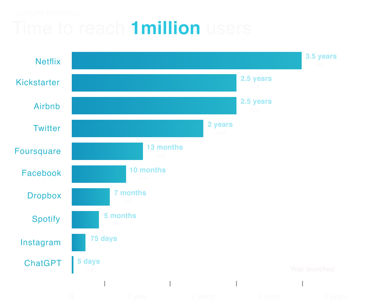 And from 1 million to 100 million, it took ChatGPT under 60 days.